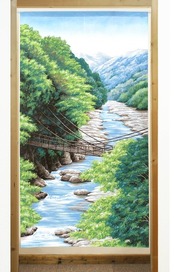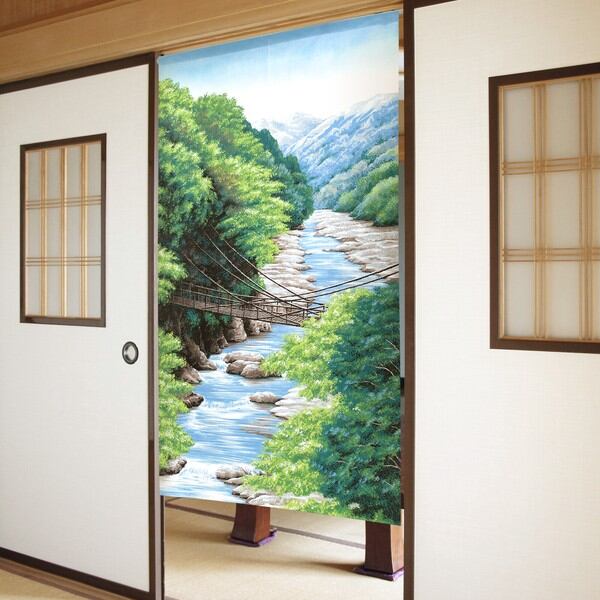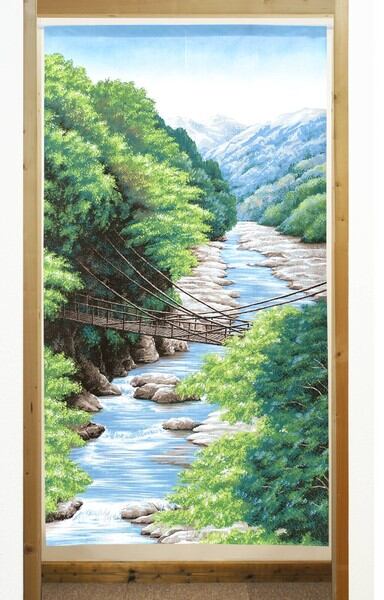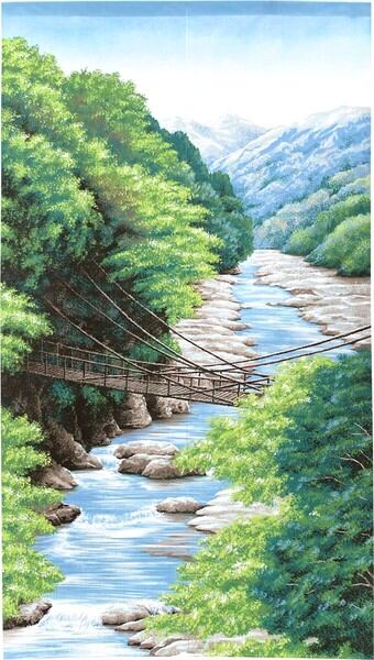 のれん 受注生産 目隠し 「渓谷に吊橋」85x150cm 日本製 風景 景色 / 家具・インテリア ファブリック・敷物