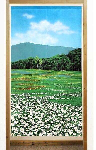 のれん 受注生産 目隠し 「花畑」85x150cm 日本製 風景 景色 / 家具・インテリア ファブリック・敷物
