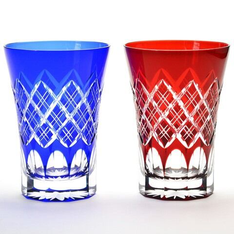 ≪伝統の江戸切子≫ 重ね矢来 タンブラーペア グラス ジュース ビール 酒 / 生活雑貨 食器・キッチン グラス・コップ・タンブラー