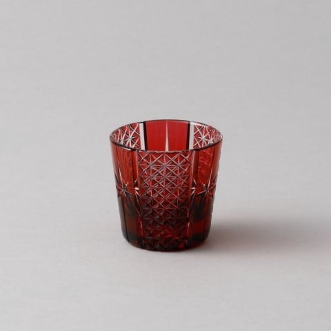 ≪伝統の江戸切子≫ クリスタル ぐい呑み 赤 根本達也作 杯 盃 日本酒 冷酒 / 生活雑貨 食器・キッチン グラス・コップ・タンブラー