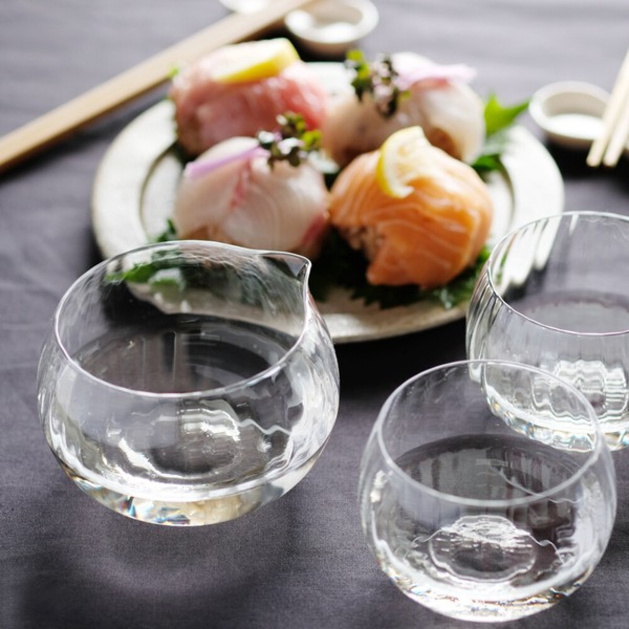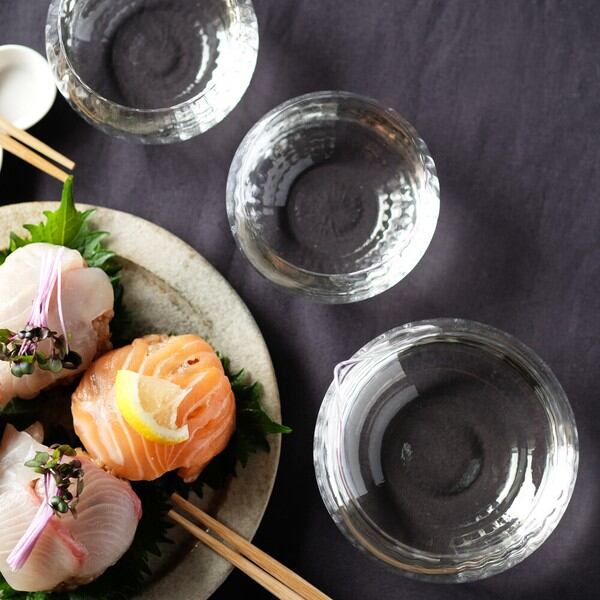このグラスは、特に女性が日本酒をスタイリッシュに楽しんでいただけるようにと、デザイナー秋山かおり氏とともに作り上げました