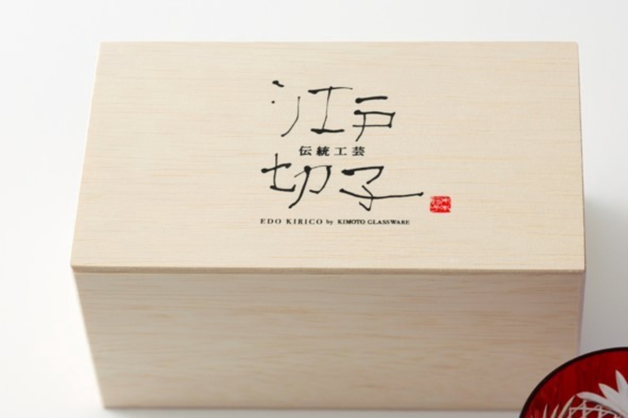カットすることにより表面の色ガラスから内側の透明なグラスが見えてきて、透明と色ガラスの素晴しいコントラストが、伝統の文様や花切子のデザインで浮き上がります