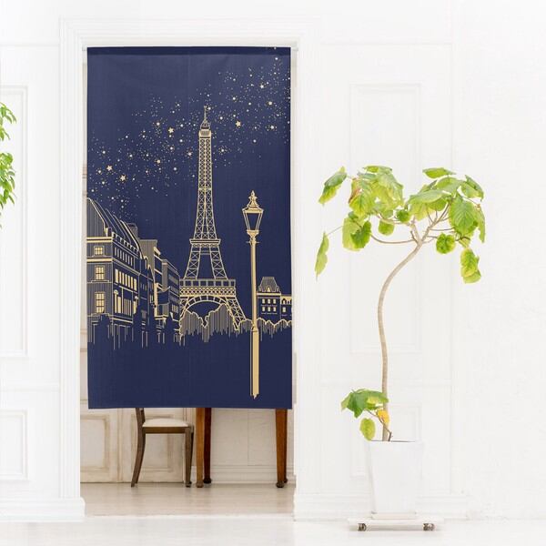 のれん 受注生産 目隠し 「エッフェル塔」85x150cm 日本製 風景 景色 / 家具・インテリア ファブリック・敷物