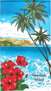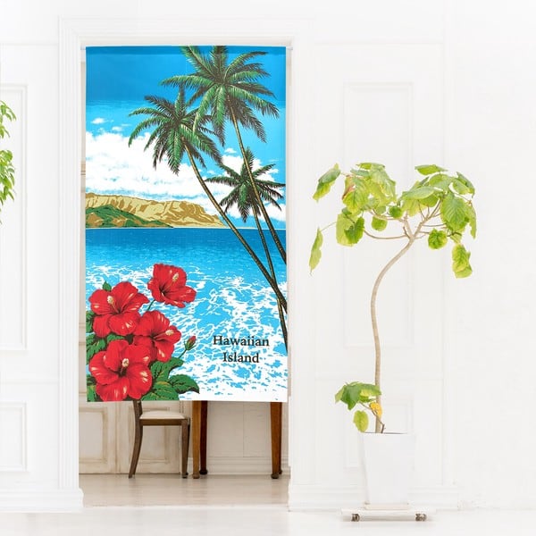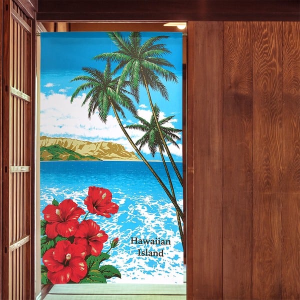 のれん 受注生産 目隠し 「Hawaiian_Island」85x150cm 日本製 風景 景色 ハワイアン / 家具・インテリア ファブリック・敷物