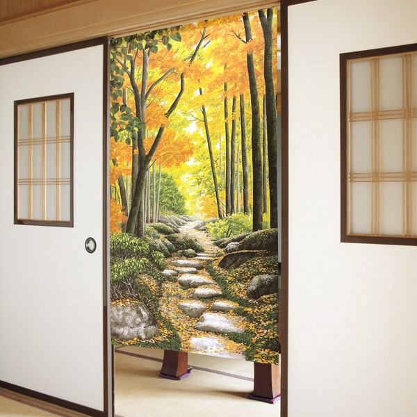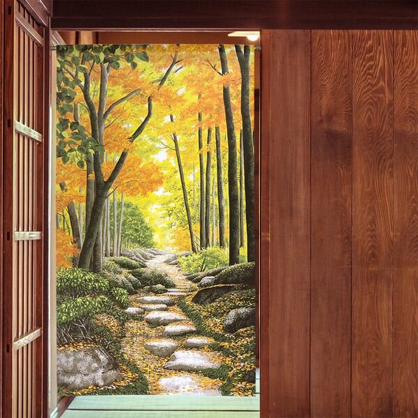 のれん 受注生産 目隠し 「秋の石道」85x150cm 日本製 風景 景色 / 家具・インテリア ファブリック・敷物