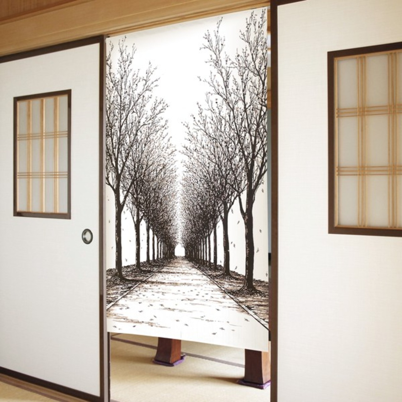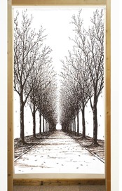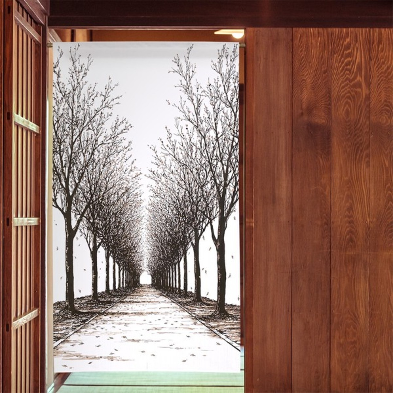 のれん 受注生産 目隠し 「落葉並木道」85x150cm 日本製 風景 景色 / 家具・インテリア ファブリック・敷物