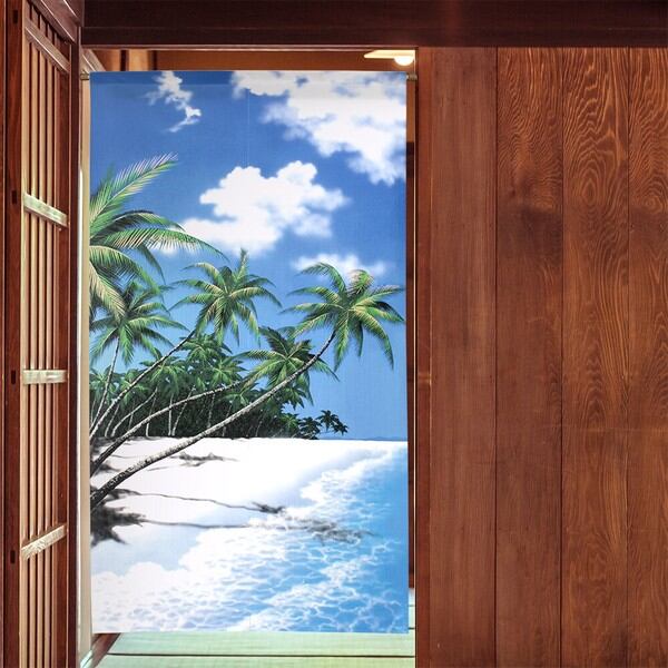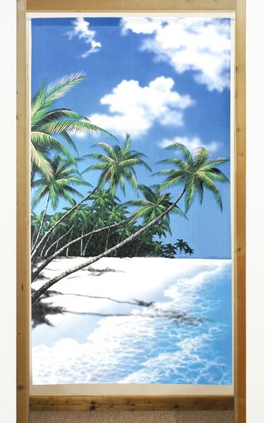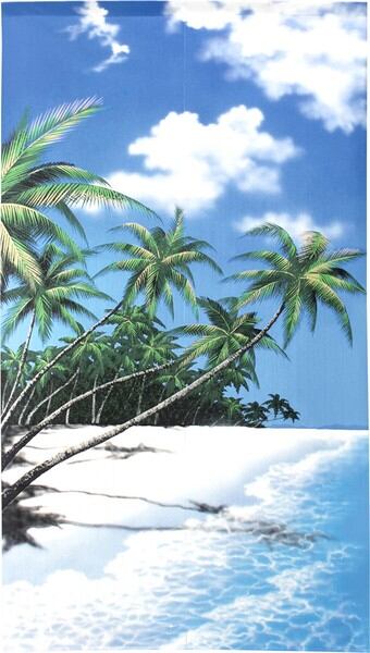のれん 受注生産 目隠し 「ヤシとビーチ」85x150cm 日本製 風景 景色 / 家具・インテリア ファブリック・敷物
