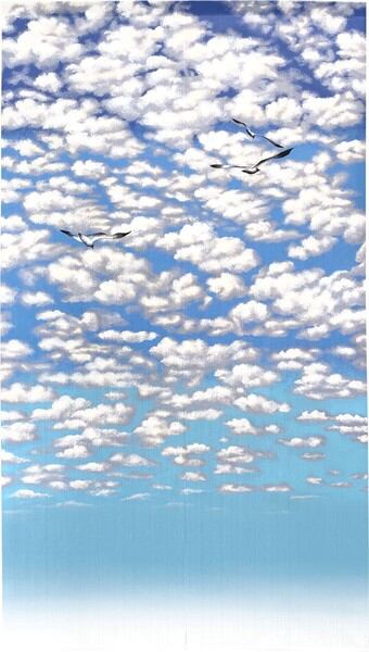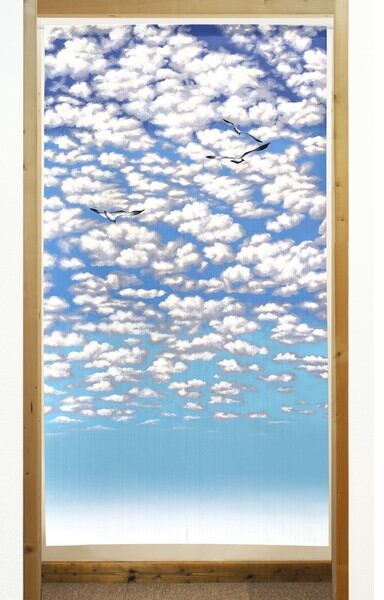 のれん 受注生産 目隠し 「ウミネコと空」85x150cm 日本製 風景 景色 / 家具・インテリア ファブリック・敷物