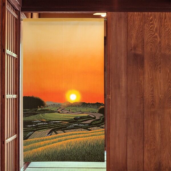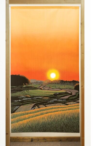 のれん 受注生産 目隠し 「だんだん畑と夕日」85x150cm 日本製 風景 景色 / 家具・インテリア ファブリック・敷物