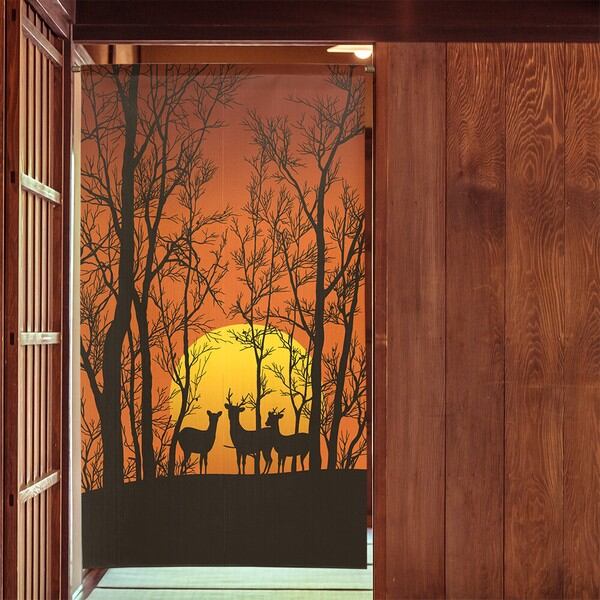 のれん 受注生産 目隠し 「夕日と鹿」85x150cm 日本製 風景 景色 / 家具・インテリア ファブリック・敷物