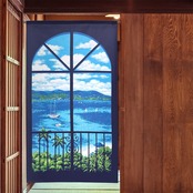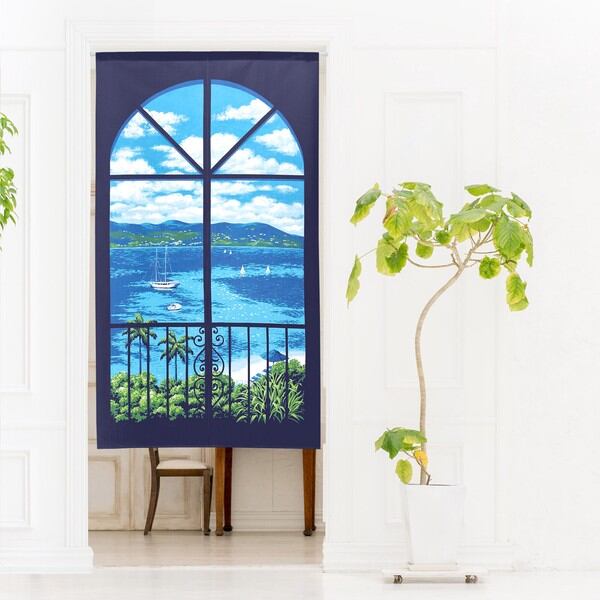のれん 受注生産 目隠し 「オーシャンビュー」85x150cm 日本製 風景 景色 / 家具・インテリア ファブリック・敷物