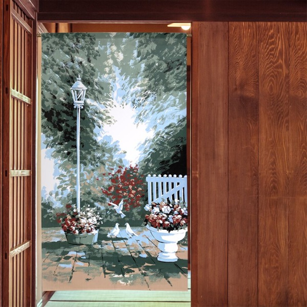 のれん 受注生産 目隠し 「White_Garden」85x150cm 日本製 風景 景色 / 家具・インテリア ファブリック・敷物
