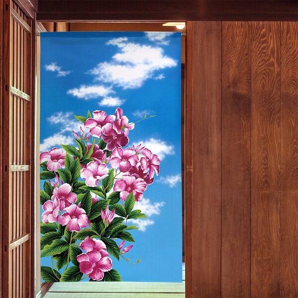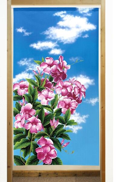 のれん 受注生産 目隠し 「Hawaiian_Flower」85x150cm 日本製 風景 景色 ハワイアン / 家具・インテリア ファブリック・敷物