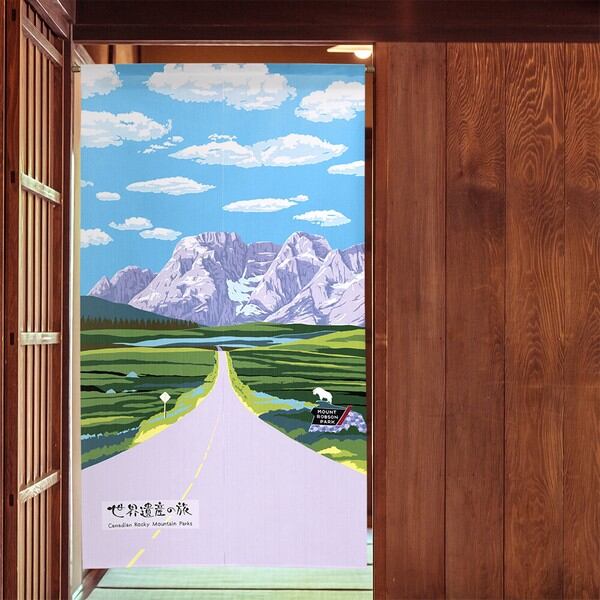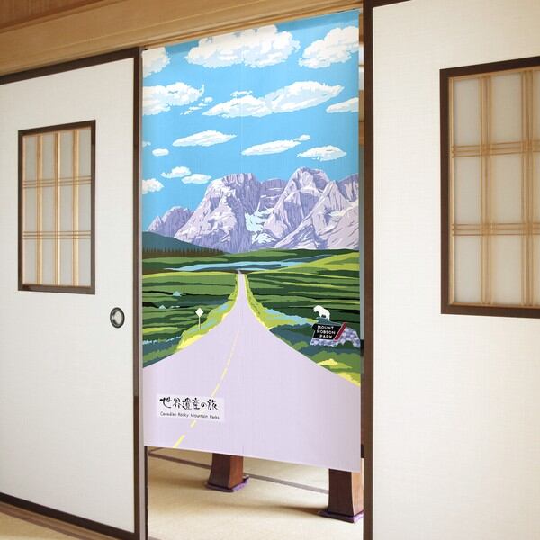 のれん 受注生産 目隠し 「世界遺産の旅 カナディアンロッキー山脈自然公園群」85x150cm 日本製 風景 / 家具・インテリア ファブリック・敷物