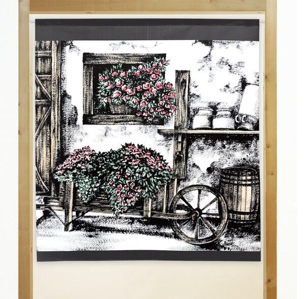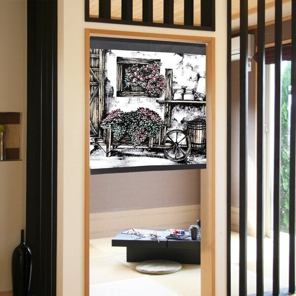 のれん 受注生産 目隠し 「花車」85x90cm 日本製 風景 景色 / 家具・インテリア ファブリック・敷物
