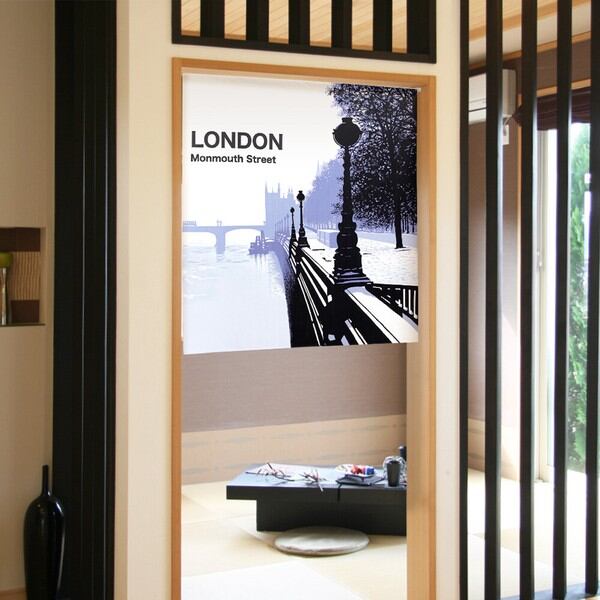 のれん 受注生産 目隠し 「LONDON_Monmouth_street」85x90cm 日本製 風景 景色 / 家具・インテリア ファブリック・敷物