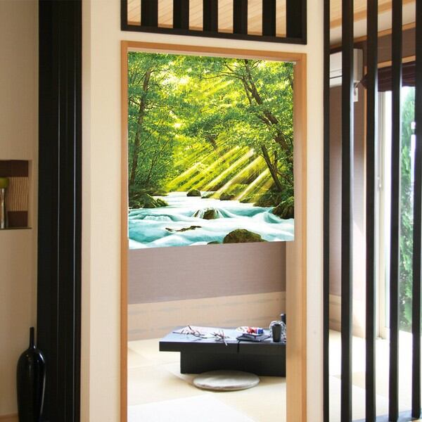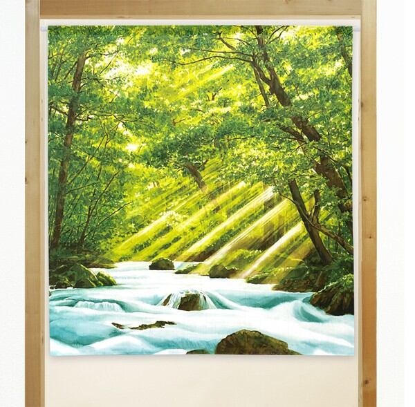 のれん 受注生産 目隠し 「陽光射す渓流」85x90cm 日本製 風景 景色 / 家具・インテリア ファブリック・敷物