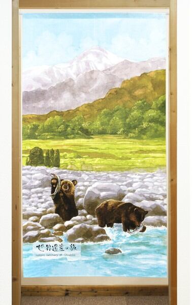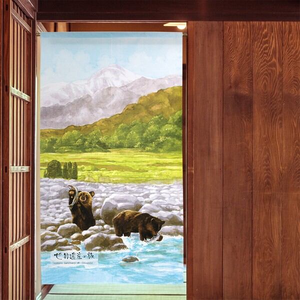 のれん 受注生産 目隠し 「世界遺産の旅 知床」85x150cm 日本製 風景 景色 / 家具・インテリア ファブリック・敷物