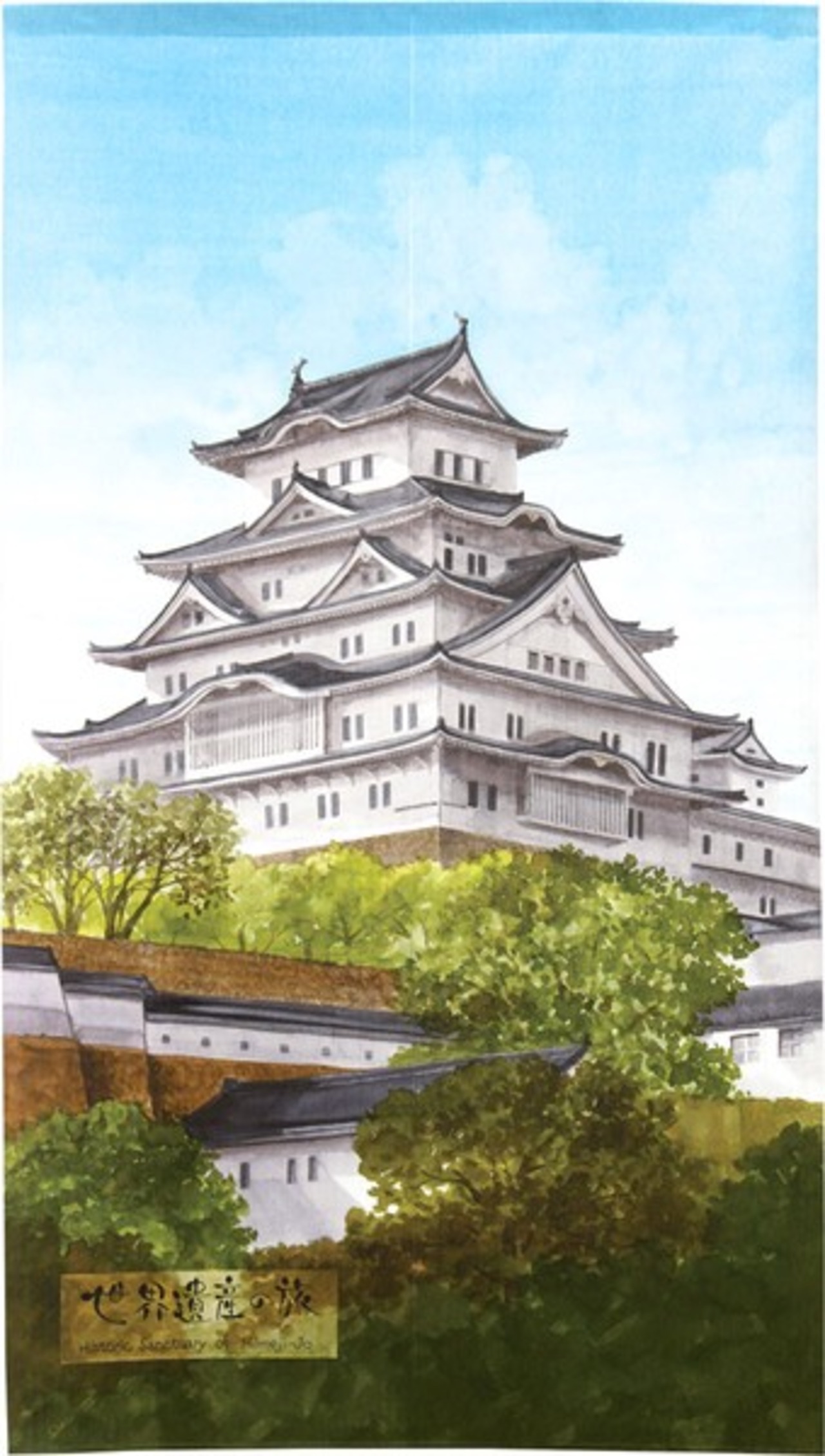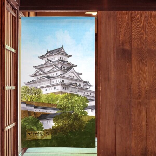 のれん 受注生産 目隠し 「世界遺産の旅 姫路城」85x150cm 日本製 風景 景色 / 家具・インテリア ファブリック・敷物