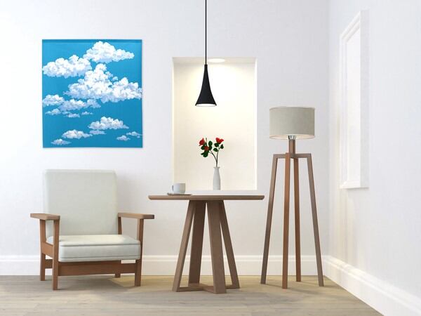 のれん 受注生産 目隠し 「わたぐも」85x90cm 日本製 風景 景色 / 家具・インテリア ファブリック・敷物