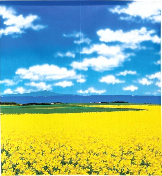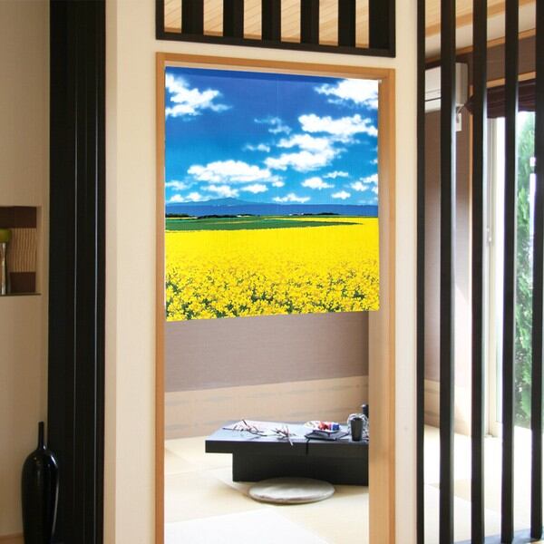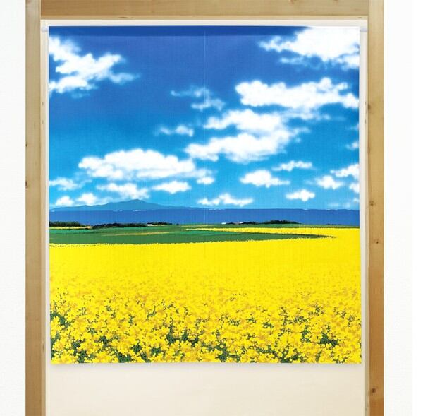 のれん 受注生産 目隠し 「花畑と山」85x90cm 日本製 風景 景色 / 家具・インテリア ファブリック・敷物