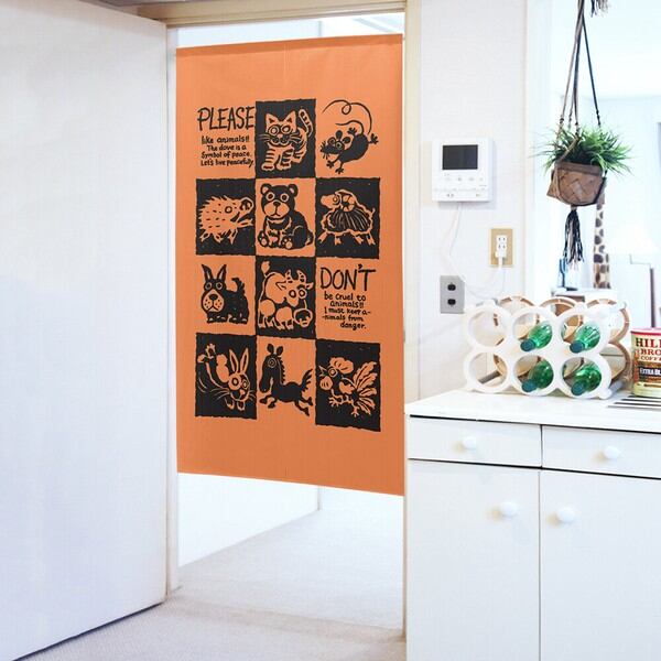 のれん 受注生産 目隠し 「animals!!_OR」85x150cm 日本製 洋風 洋柄 / 家具・インテリア ファブリック・敷物