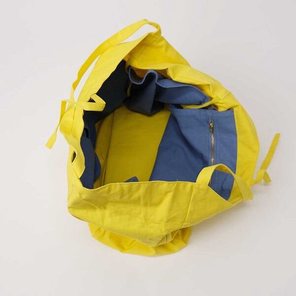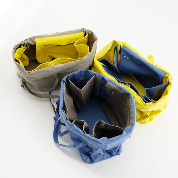 袋詰めの際に中に入れたものが倒れたり、 上手く食材が収まらない時の不便さを解消するために、ポケットではなく仕切りをバッグの内側に取り付けました