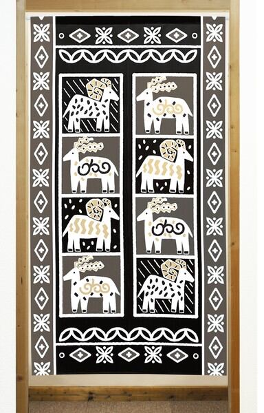 のれん 受注生産 目隠し 「モノクロームゴート」85x150cm 日本製 洋風 洋柄 / 家具・インテリア ファブリック・敷物