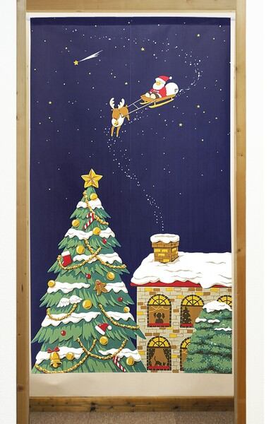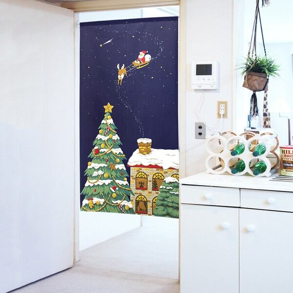 のれん 受注生産 目隠し 「星空とサンタクロース」85x150cm 日本製 洋風 洋柄 / 家具・インテリア ファブリック・敷物