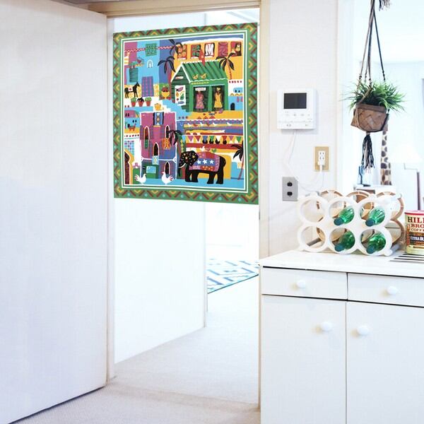 のれん 受注生産 目隠し 「エスニックビュー」85x90cm 日本製 洋風 洋柄 / 家具・インテリア ファブリック・敷物