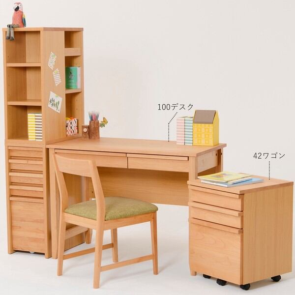 天然木素材の万能学習デスク デスクワゴン トライ-A/kiduku / 家具・インテリア