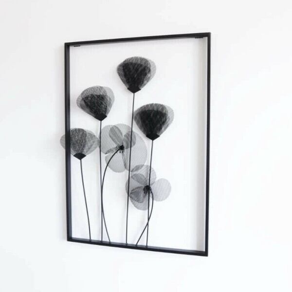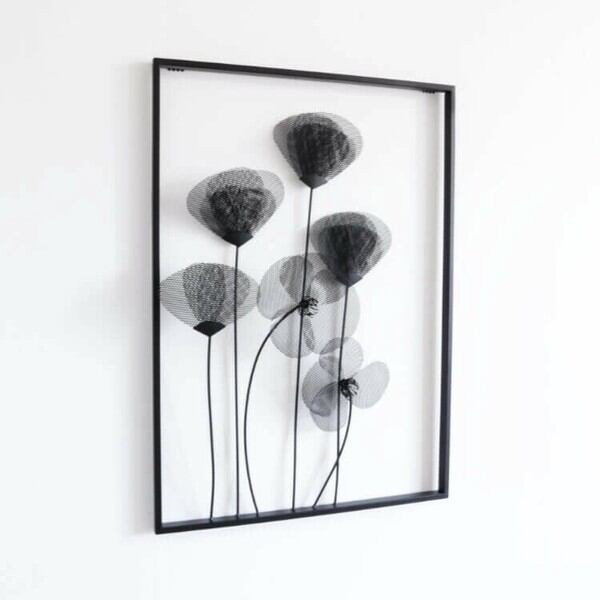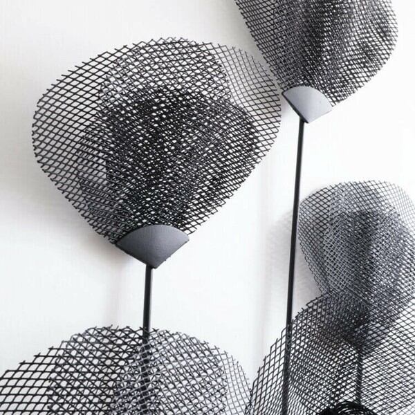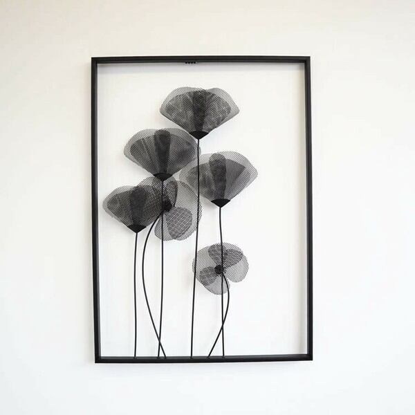 フレーム空間を大きく使い、お花部分はメッシュの重なりに仕上げたウォールデコレーションです