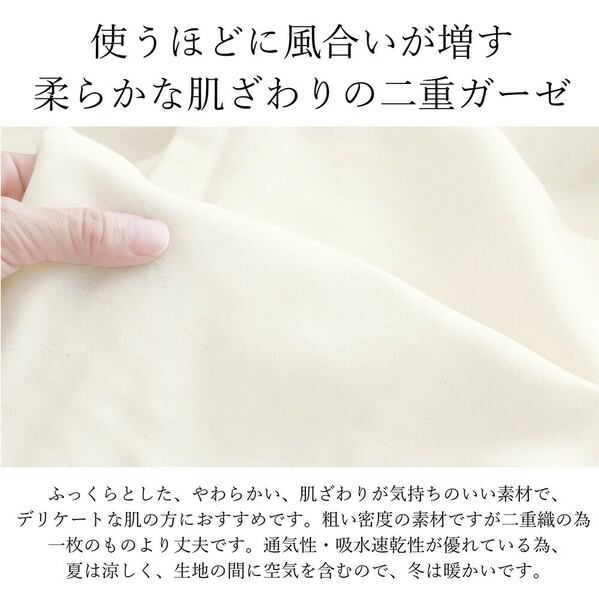 二重ガーゼで肌触りもよく、使うほどに風合いが増すのが特徴です