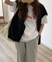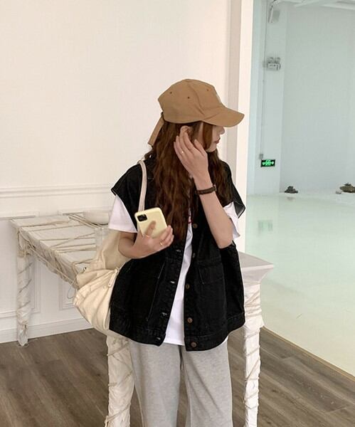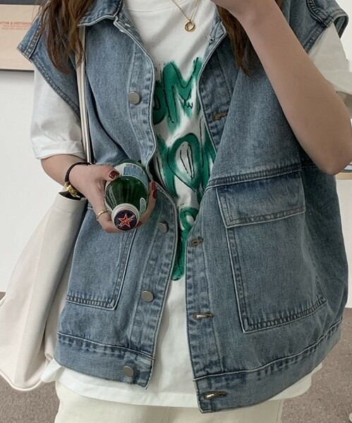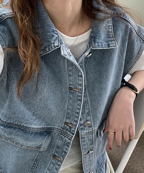 韓国ライクなデニムベスト オーバーデニムベスト 春夏 ベスト / ファッション レディースアパレル トップス ベスト・ジレ