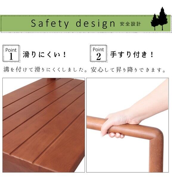 ●手すり付きのため玄関、ベランダ等の昇り降りがラクラクです