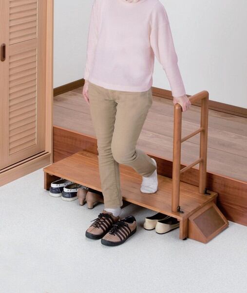 木製手すり付き玄関踏み台 / 生活雑貨 介護用品 歩行・移動補助用品