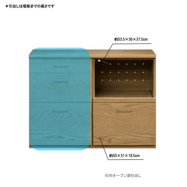 ・60巾3段チェストお皿や調味料の収納にオススメ