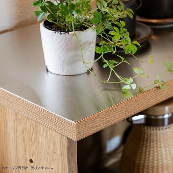 ・オープン深引出モイス+1口コンセント付きなので、炊飯器やポットなど蒸気の出る家電の収納に