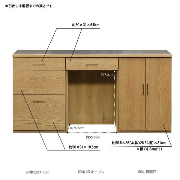 ・オープン深引出/3段チェスト/板開戸/1段オープン