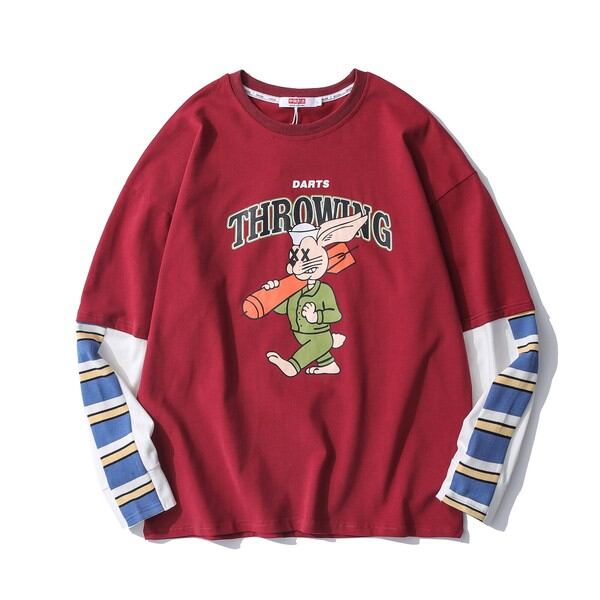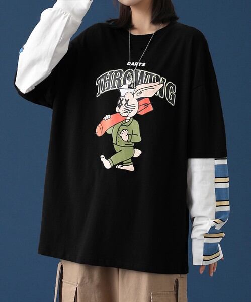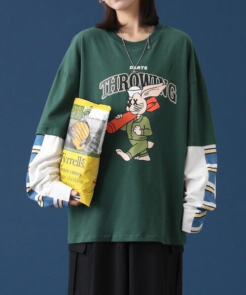HOOK 人気アイテム 重ね着風長袖tシャツ フロントプリント入り / ファッション メンズアパレル トップス Tシャツ・カットソー