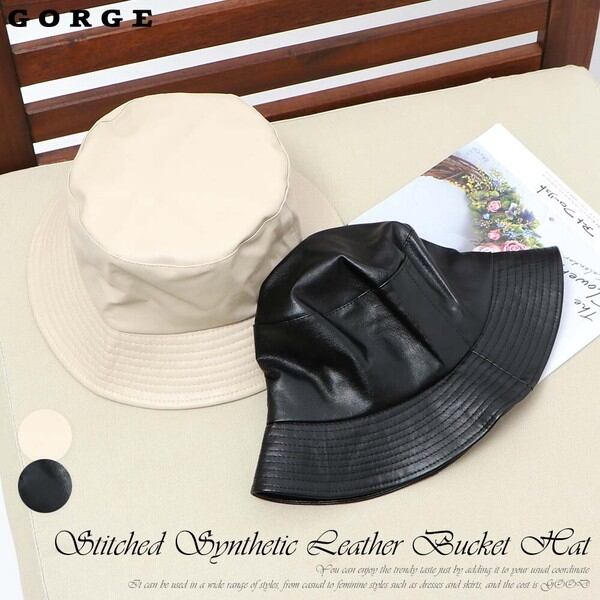 ステッチ合皮バケットハット / ファッション 服飾雑貨 帽子