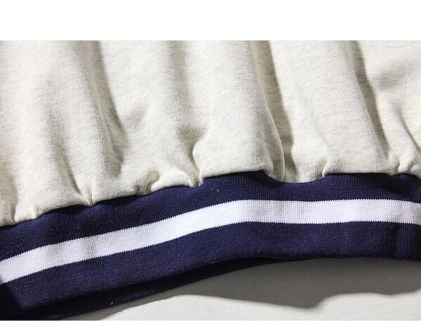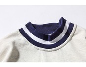 ボーダーリブを用いたクルーネックスウェットトレーナー。リブ部分を配色で切り替えたカラーリングは、ストリート映え間違いなし、格好良さ、可愛らしさを兼ね備えた逸品です。綿とポリエステルの混紡で、保温性、耐久性に優れ、洗いを重ねることで、体に馴染む独特の風合いが特徴。