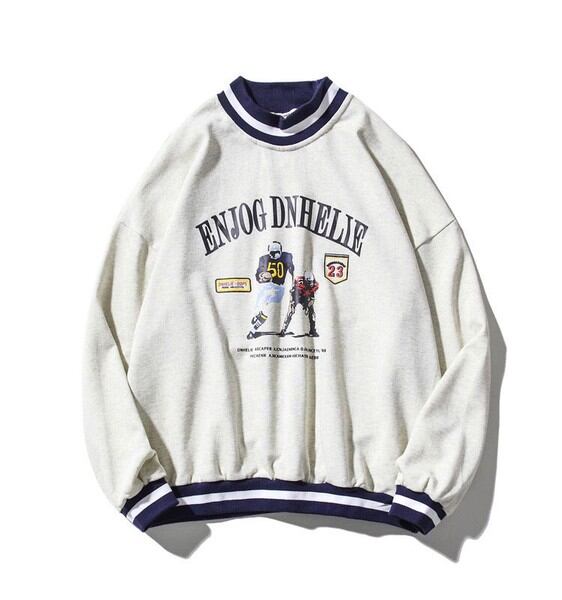 HOOK アンティーク風プリント ボーダー柄リブ トレーナー / ファッション メンズアパレル トップス スウェット・パーカー