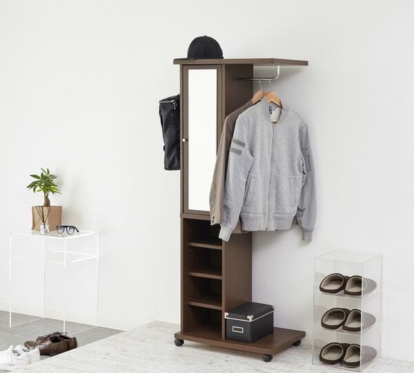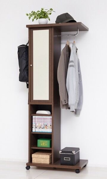 ミラー付ハンガーラック(ブラウン) / 家具・インテリア 収納家具 ハンガー・ハンガーラック