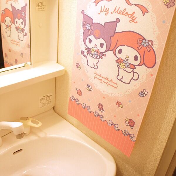 サンリオのかわいいキャラクターが描かれたタオル生地のタペストリー!