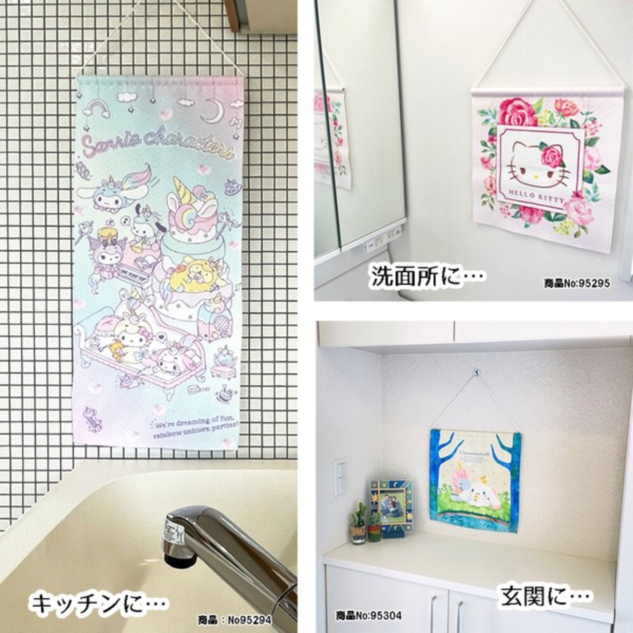 サンリオのかわいいキャラクターが描かれたタオル生地のタペストリー!