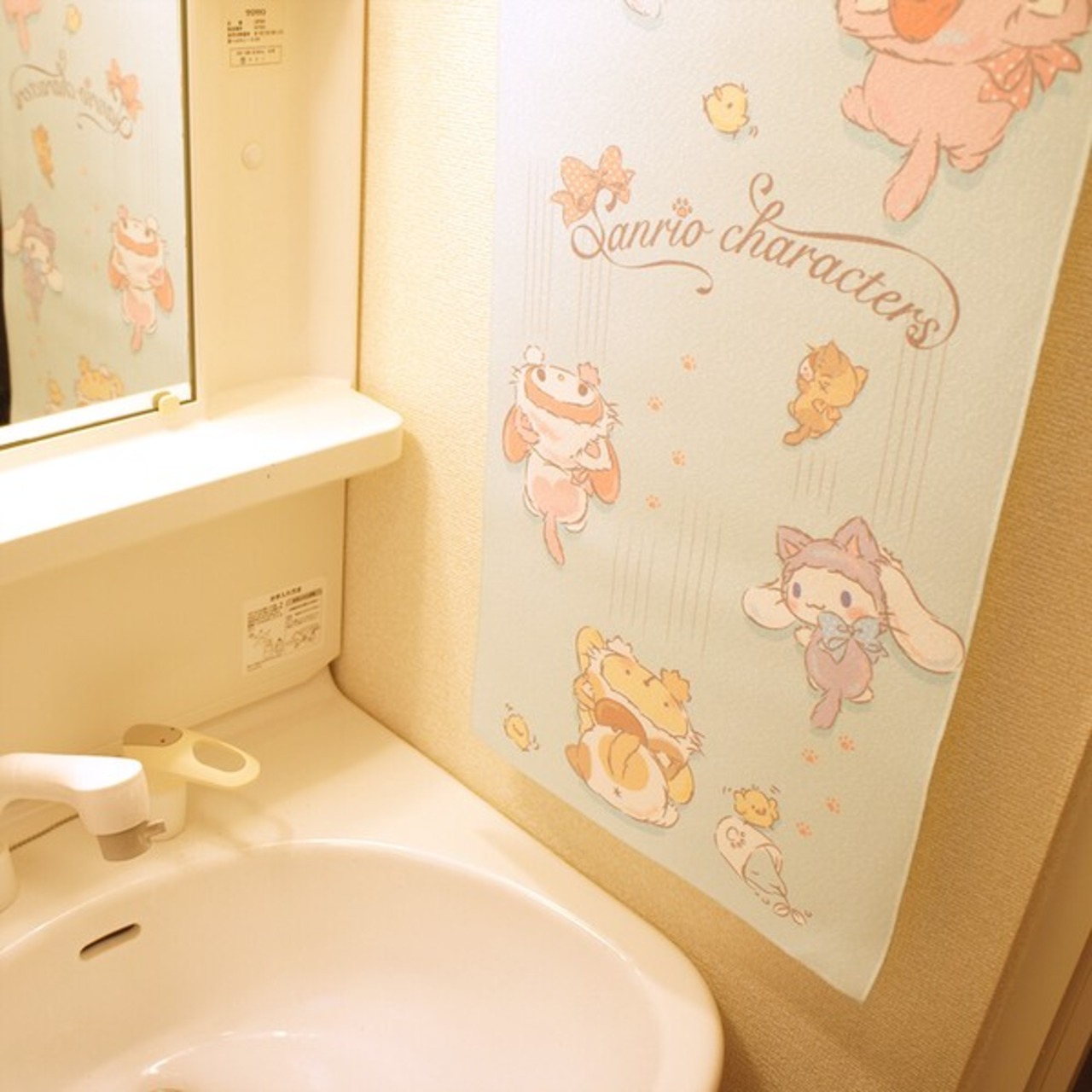 サンリオのかわいいキャラクターが描かれたタオル生地のタペストリー!