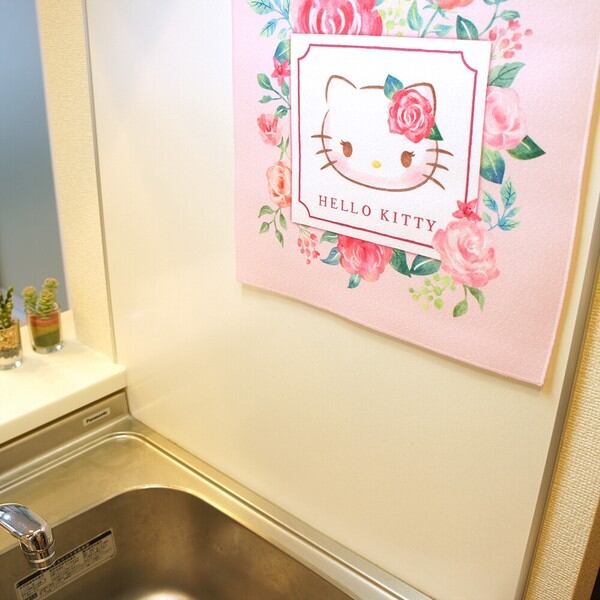 受注生産 タオルタペストリー サンリオ「ハローキティ ローズガーデン」33×33cm 日本製 小物 他 / 家具・インテリア ファブリック・敷物 のれん