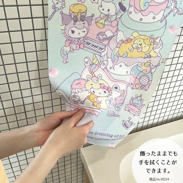 サンリオのかわいいキャラクターが描かれたタオル生地のタペストリー!