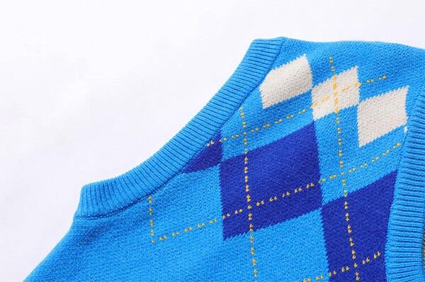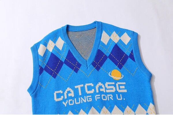 ブルジャガードで編立て、レトロでPOPな古着感のあるグランジ風ニットベスト